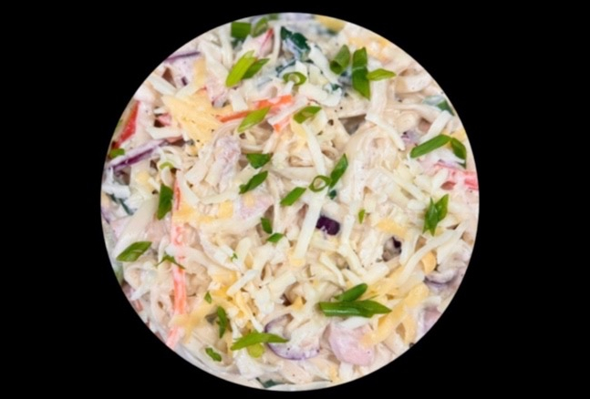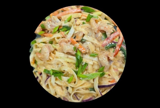Соус сливочный, курица, микс овощей, стручковая фасоль, лук зеленый, кунжут, сыр моцарелла. 450 гр.