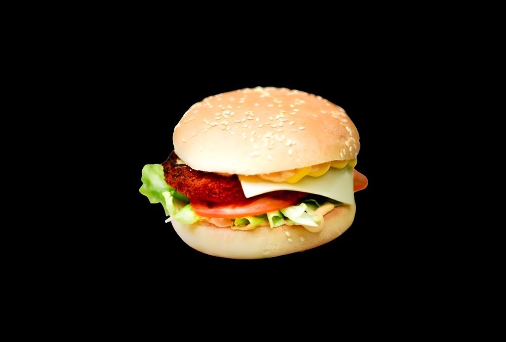 Салат, огурец, помидор, соус BBQ, двойная котлета куриная, двойной сыр.
