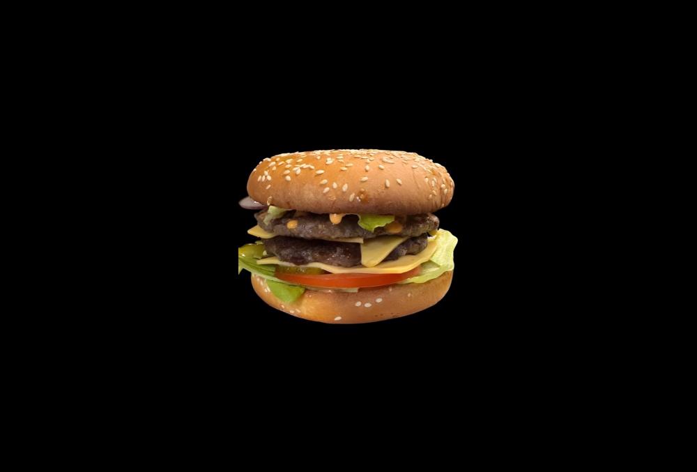Салат, огурец, помидор, фирменный соус, двойная говяжья котлета, двойной сыр, бекон, лук.
